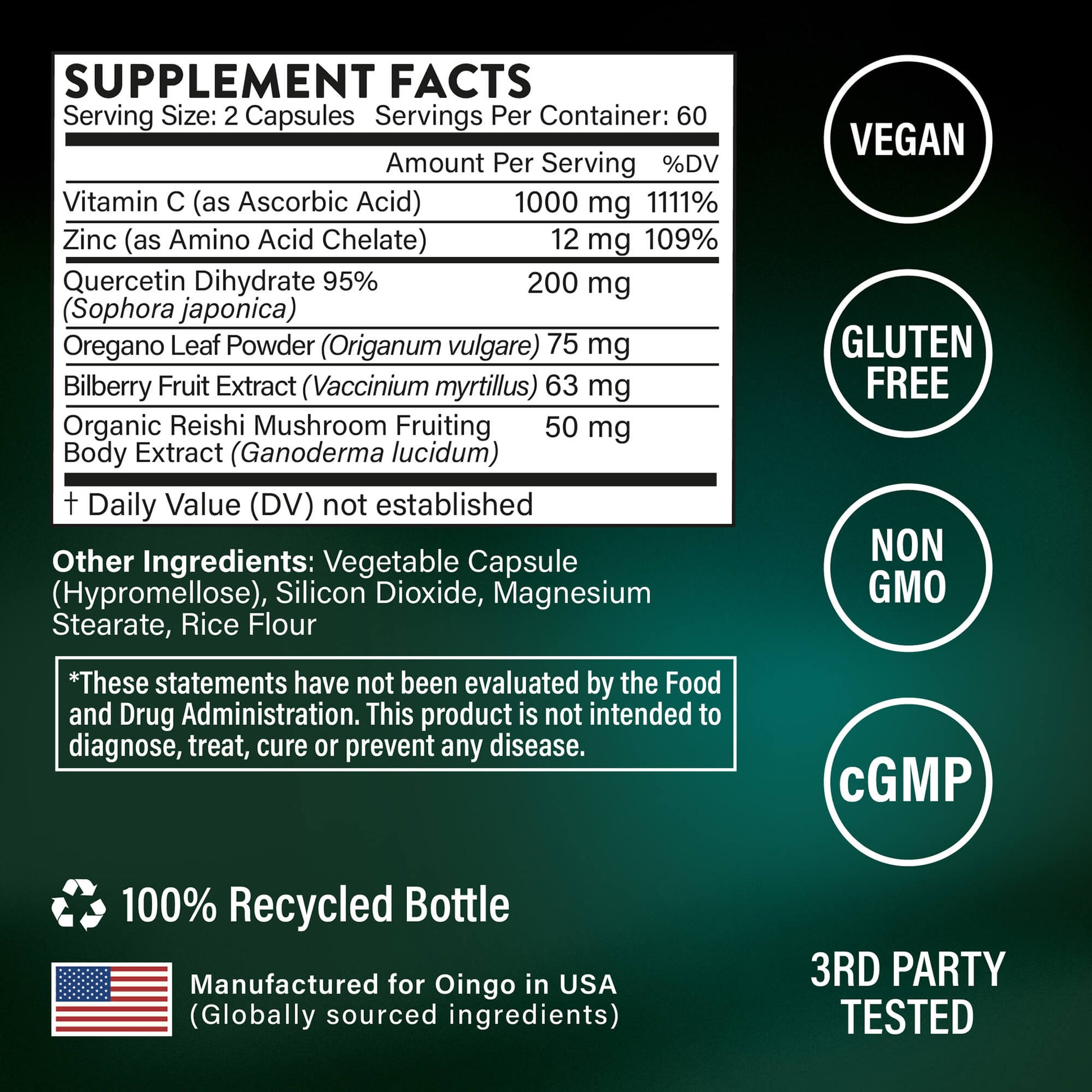 Oingo Daily Immunity combines powerhouse botanicals and essential nutrients—including Quercetin, Reishi Mushroom, Zinc, Oregano Oil, and Vitamin C—for reliable, daily immune system support. It helps prime your system before exposure and gives it the edge when it’s time to fight back.
